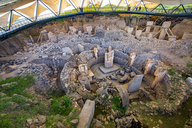 With its history of 12,000 years, Göbeklitepe rewrote human history and it is recognized as the world’s oldest cult center ever discovered. Situated in the province of Urfa in southeastern Türkiye, Göbeklitepe was designated as a UNESCO World Heritage Site in 2018 with its amazing monumental architecture. Göbeklitepe changed most of what we knew about the Neolithic Age with the host of information it offered documenting the life of hunter-gatherers, transition into agriculture and animal husbandry, temple architecture and the birth of art. The most interesting findings also included the T-shaped monumental pillars that are as tall as 6 meters and weigh up to 40 tons. Many of the pillars feature human, animal or abstract symbols while some have embossed animal figures. The oldest temple ever discovered in the history of humanity, Göbeklitepe virtual museum tour offers an unparalleled window into time for those who have never been to Göbeklitepe before as well as allowing for a closer look at the T-shaped pillars. In the section titled the Temple, you can tour the temple on the platform and effortlessly explore the area.