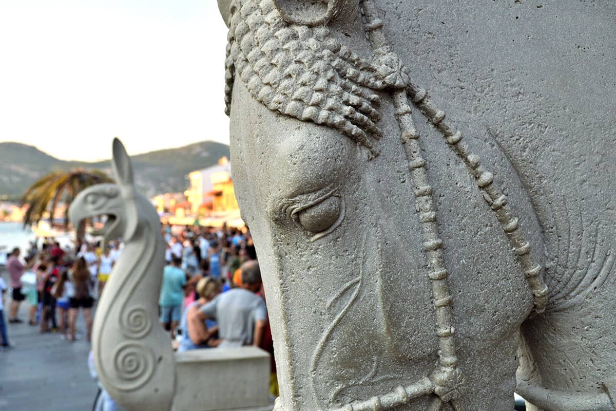 In truth, you can see many statues when you wander on the coast of Foça from horse and griffon busts to columns, which are true copies of Ionian structures excavated from various sites in the town.