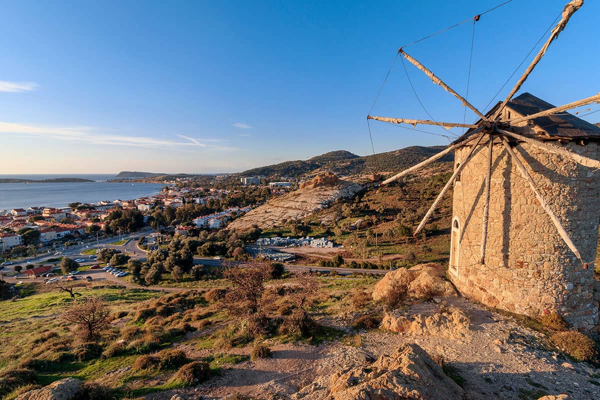 When you part with the mausoleum, right at the end of Foça-İzmir road, at the entrance of the town you are greeted once again by three different sites banked up in the same area: Phokaia’s ancient theatre, Great Mother Kybele’s holy site, and the Ottoman mills.