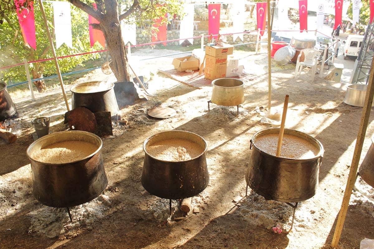 The wedding cooks make it in cooperation. As a result of the pounding process, meat and wheat come together making a smooth texture overall. It is said that the longer and vitally it is beaten, the better Keşkek tastes!